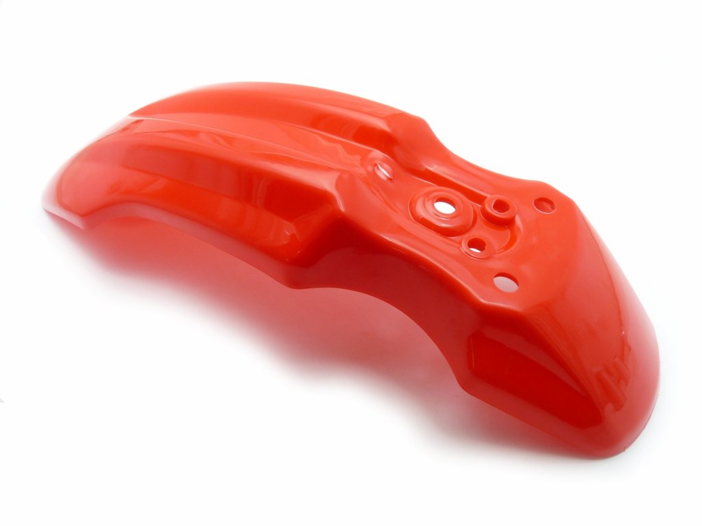 Originálne pitbike Stomp, DemonX, Tomanon; predný blatník CRF50, farba červená, vyrobené z polypropylénu, ktorý zaručuje vysokú odolnosť proti poškodeniu / zlomeniu (vysoká ohybnosť) náhradný diel pre modely:- Stomp Juicebox (model s CRF50 plastmi)