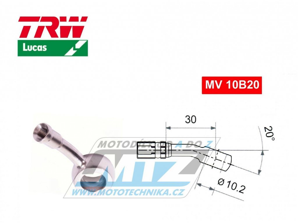 Koncovka brzdovej hadice TRW VarioFlex MV10B20 (banjo 10mm zahnuté 20 °) - materiál nerez