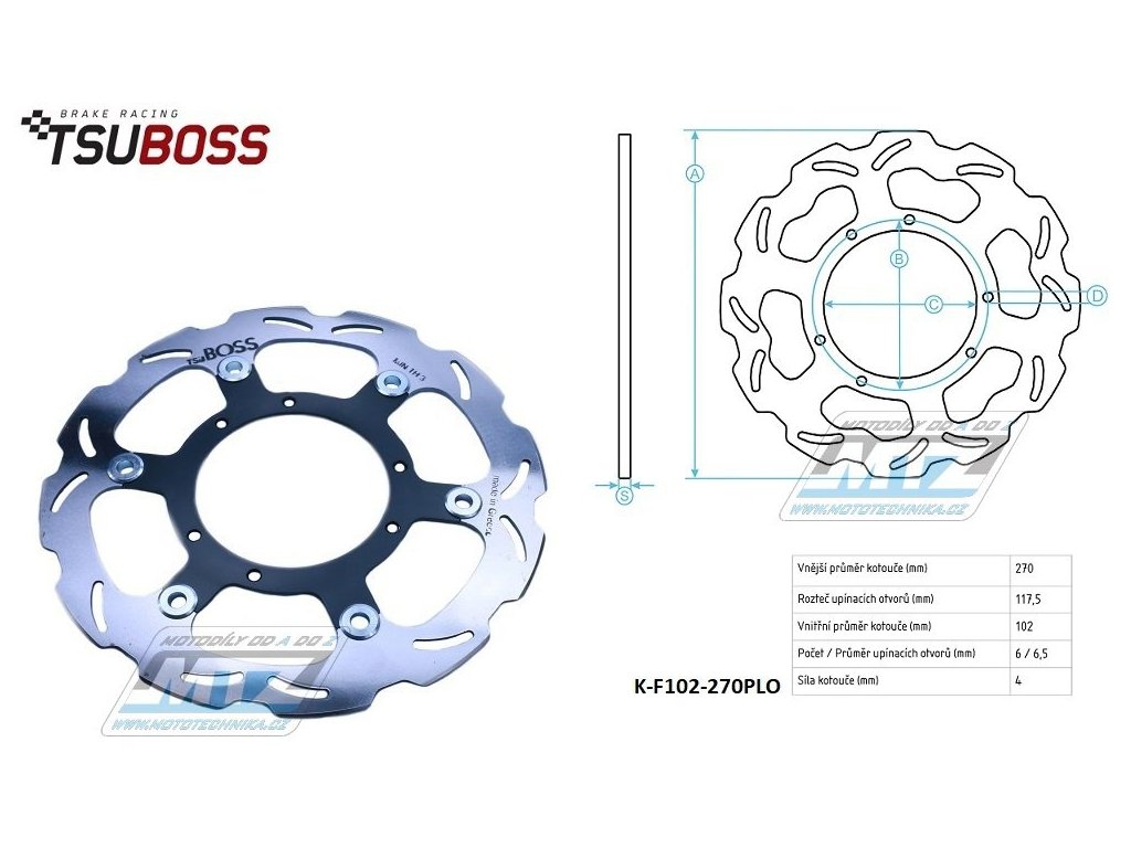 - vďaka špeciálnemu materiálu a premyslenej konštrukcii poskytujú brzdové kotúče Tsuboss vynikajúci brzdný účinok a výkon, nízke opotrebenie, odolávajú vysokému kontaktnému tlaku a pomáhajú progresívnej reakcii pri brzdení, vďaka čomu je brzdenie plynulejšie a presnejšie
