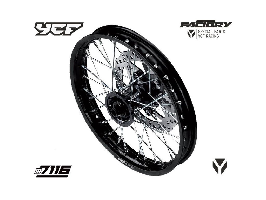 Kompletné predné zosilnené koleso 1.4x14", CNC náboj, pevnostný hliníkový ráfik 7116 pitbike YCF Oranžová