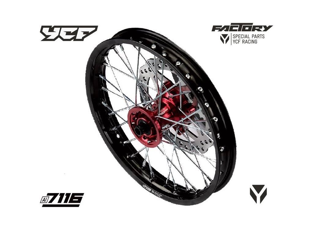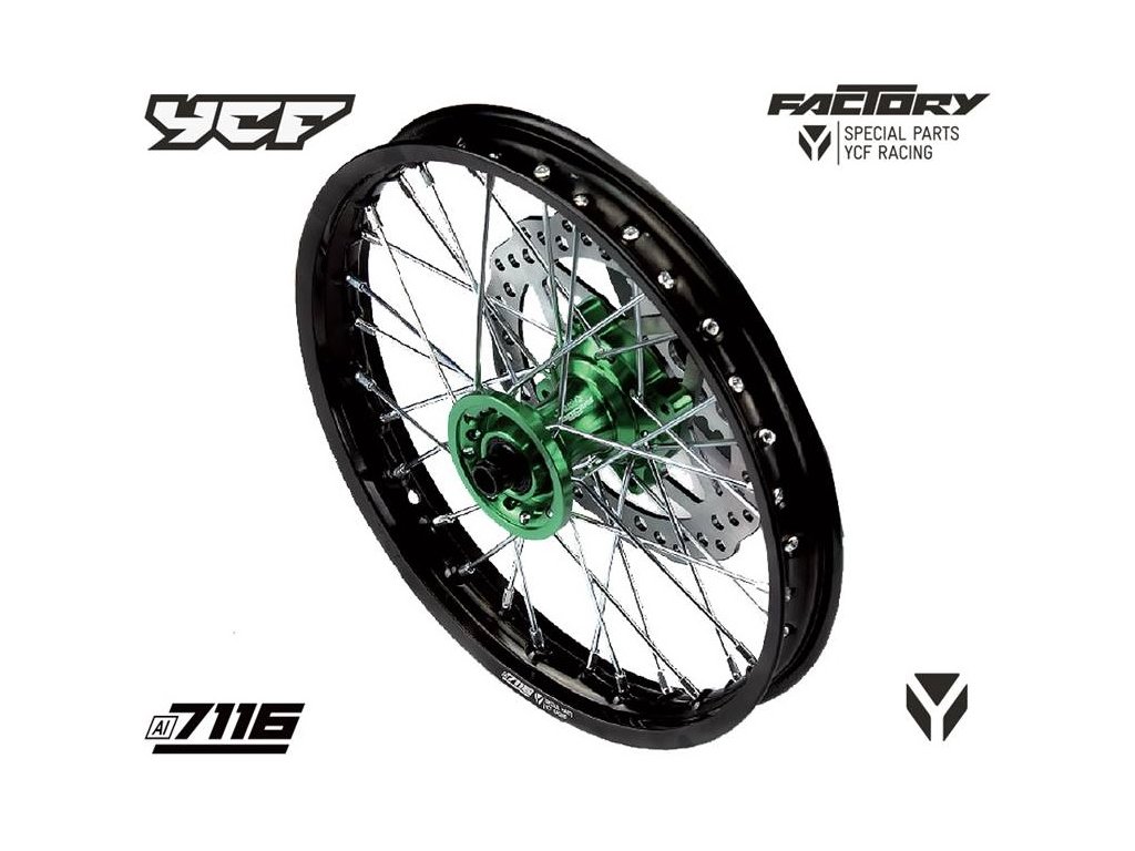 Kompletné predné zosilnené koleso 1.4x14", CNC náboj, pevnostný hliníkový ráfik 7116 pitbike YCF Zelená