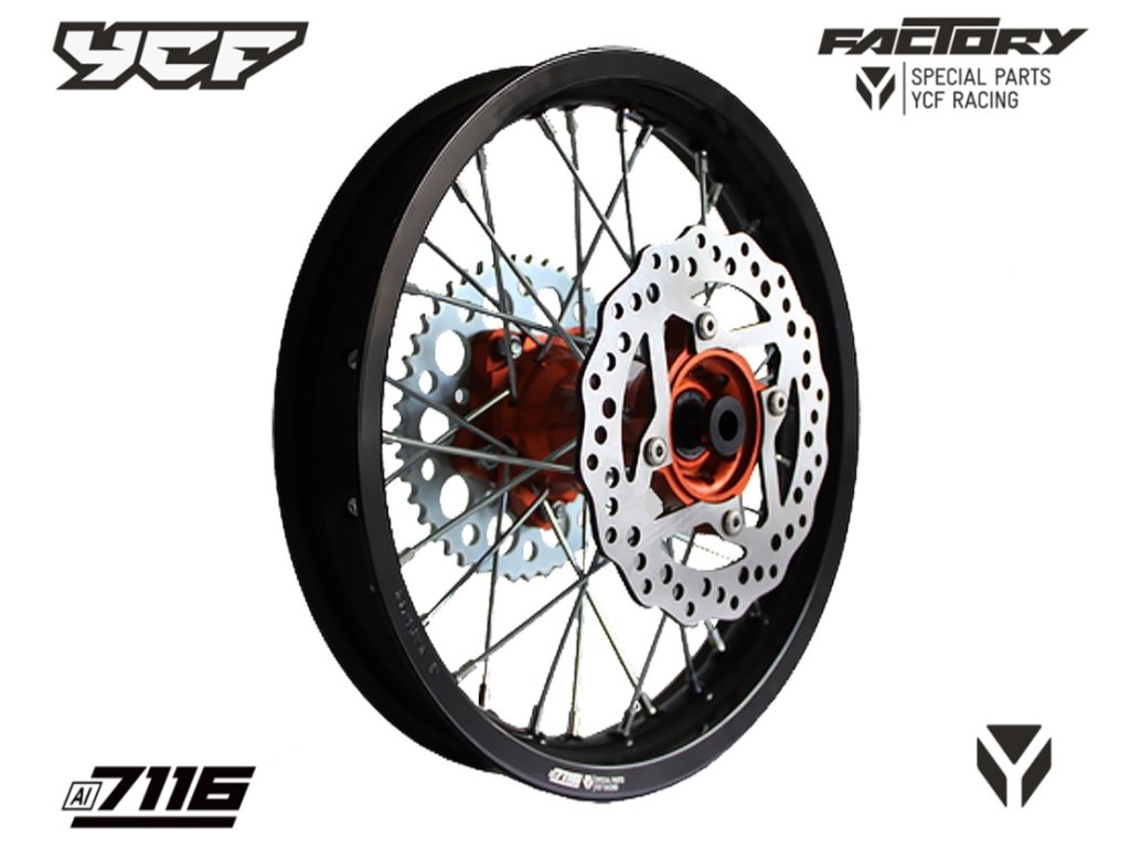 Kompletné zadné zosilnené koleso 1.85x12", CNC náboj, pevnostný hliníkový ráfik 7116 pitbike YCF Červená