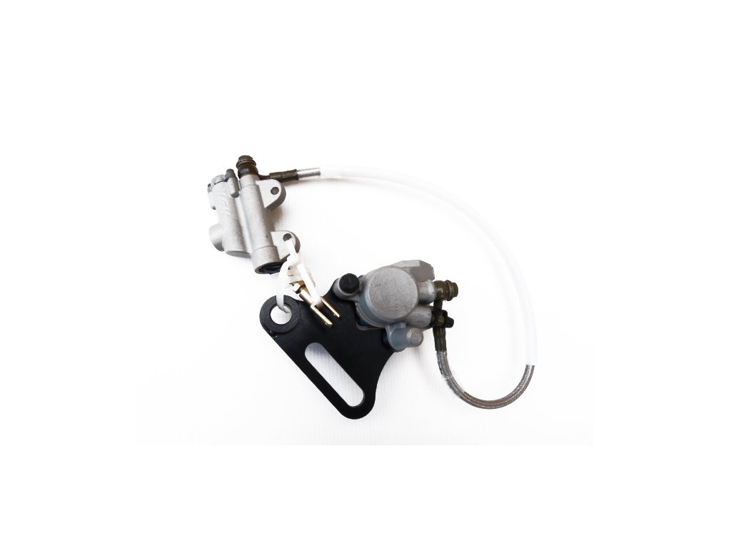 pitbike WPB RACE, Tomanon; zadná brzda komplet obsahuje jednopiestkový brzdič s brzdovými doštičkami, hadicu a brzdovú pumpu, dĺžka hadice 55cm, dĺžka tiahla s okom cca 6cm, rozstup pre uchytenie zadnej brzdovej pumpy 44mm; použité na modeloch: WPB RACE 125, 140, 155, 190 beastDodatočné parametre
