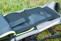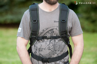 Popruhy na ramená sú jednoducho nastaviteľné pomocou suchých zipsov a v strede na hrudníku sa dajú zopnúť spolu, aby sa nezošuchovali z ramien. Batoh má zvláštne odnímateľné vrecko na náradie s gumičkovými priehradkami. Zadná časť batohu je vyplnená mäkučkým polstrovaním a prekrytá priedušnou sieťkou.