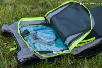So svojimi 10 litrami úložného priestoru a 2 litrami rezervoáru je to väčší z dvojice batohov. Pre vyššiu nosnosť má, samozrejme, trochu iné popruhy, ktoré sú nastaviteľné na prackách a proti zošuchovaniu z ramien sa popruhy dajú spojiť na hrudi, plus je batoh vybavený aj opaskom na pás. Tak isto ako aj pri AQUA DRINK BAGu, aj tu sa dá hadička vyviesť na obe strany popruhov.