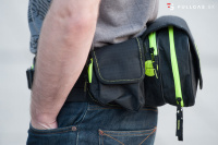 Pre tých, čo nemajú radi na chrbte záťaž, je tu DROMY WAISTPACK. Ide vlastne o ľadvinku s vodným rezervoárom. Priestor na náradie a iné drobnosti má objem 3 litre a vak na rezervoár od Hydrapack-u má objem 1,5 litra. Opasok na zapínanie je na suchý zips plus nastaviteľný popruh na clik-clak zacvaknutie. Opasok má na prednej časti malú kapsičku na zips, trebárs na peniaze. Potom sú po oboch stranách pri hlavnej kapsičke dve malé vrecká. Jedno len na suchý zips a druhé aj v spojení so zipsom.