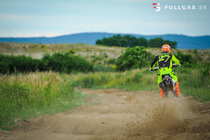 Minuloročný model mi po presadnutí z mojej hubárskej Bety Alp 4.0 pripadal skoro ako dakarský špeciál, ktorý sa aj napriek vyššej hmotnosti ľahúčko ovládal. Vedela som preto, do čoho zhruba idem. Dráha bola po daždi z predchádzajúcej noci ešte miestami mokrá a na „cestných štupľoch“ celkom šmykľavá. Po pár nechcených driftoch som svoje pomalé tempíčko radšej ešte spomalila, aby som sa nevysypala hneď v prvom kole. Po chvíli som si na to už celkom zvykla a aj keď sa snažím väčšinou jazdiť postojačky, teraz som si do zákrut radšej sadala, aby zadok toľko nešmýkal. Keďže mi zakázali jazdiť endurovú technickú časť dráhy (vzhľadom na jej náročnosť, moje schopnosti a hlavne cenu motorky :), jazdila som len po MX trati.