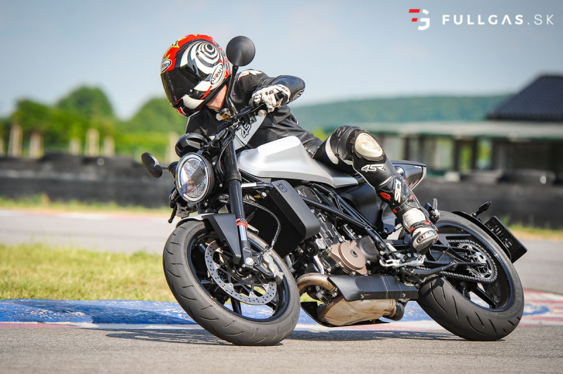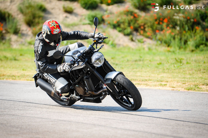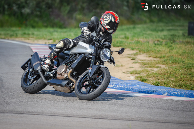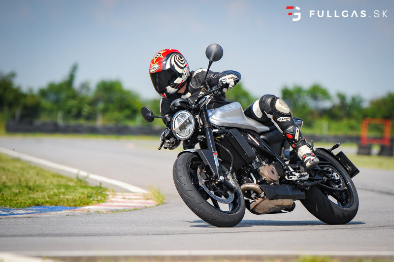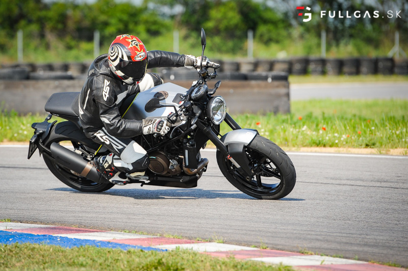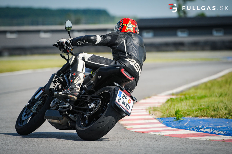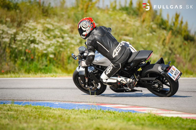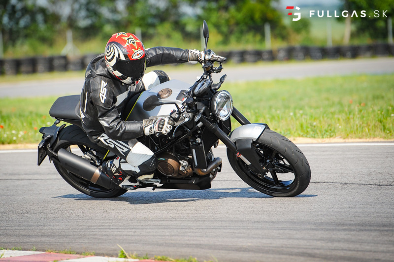 Poďme už ale jazdiť a chváliť. Motorka sa ovláda úplne ľahúčko a aj napriek mojej dlhodobejšej pauze na ceste som sa cítil na Vitpilene parádne. Motor je od voľnobehu dobre vyladený a výkon sa cez elektroplyn ovláda luxusne. V meste vás motorka nevyšklbe za ruky, či už pri plynovaní, alebo brzdení. Zato podvozok treba upraviť trochu na svoje potreby. Predky sa dajú dokliknúť krásne za jazdy, samozrejme, bez náradia. Toto chválim moc. V meste trochu ubrať kompresie a len čo sa dostanete niekde do pekných zákrut, znova prerobiť. Alebo ako v našom prípade na motokárovom okruhu v Dlhej.