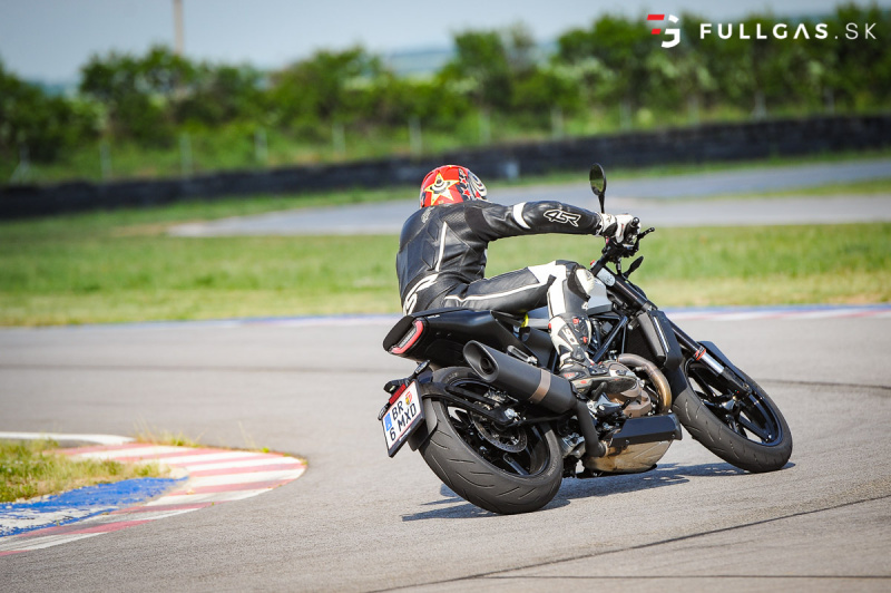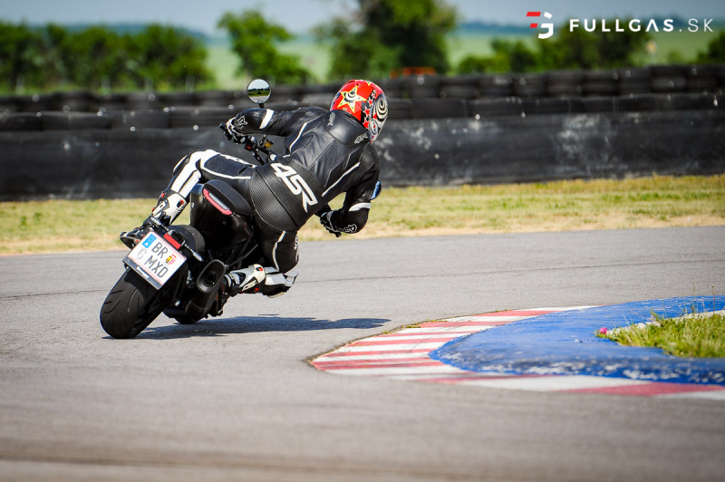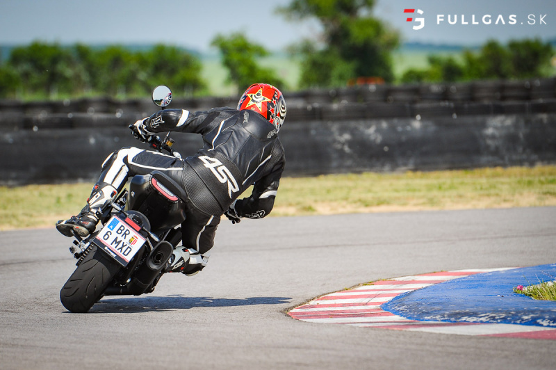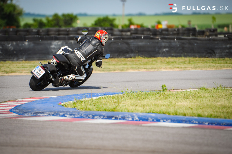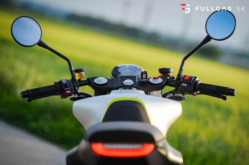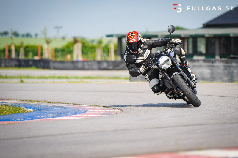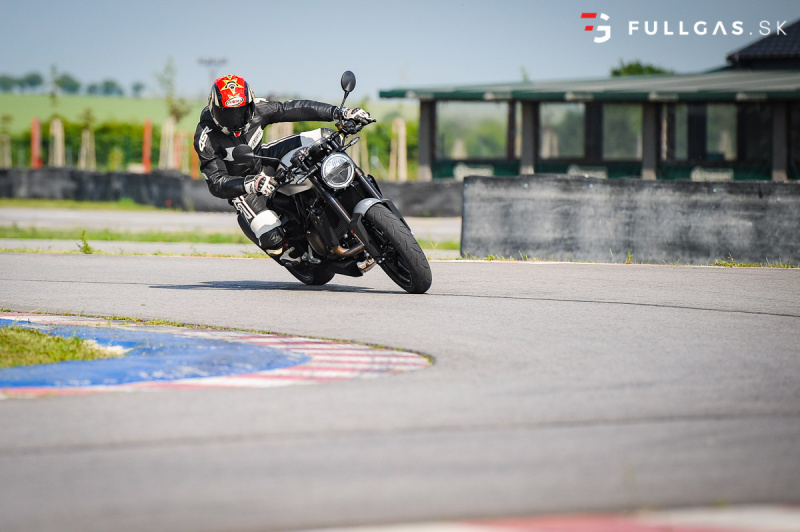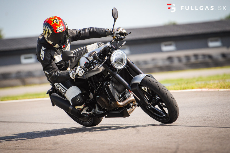 Poďme už ale jazdiť a chváliť. Motorka sa ovláda úplne ľahúčko a aj napriek mojej dlhodobejšej pauze na ceste som sa cítil na Vitpilene parádne. Motor je od voľnobehu dobre vyladený a výkon sa cez elektroplyn ovláda luxusne. V meste vás motorka nevyšklbe za ruky, či už pri plynovaní, alebo brzdení. Zato podvozok treba upraviť trochu na svoje potreby. Predky sa dajú dokliknúť krásne za jazdy, samozrejme, bez náradia. Toto chválim moc. V meste trochu ubrať kompresie a len čo sa dostanete niekde do pekných zákrut, znova prerobiť. Alebo ako v našom prípade na motokárovom okruhu v Dlhej.