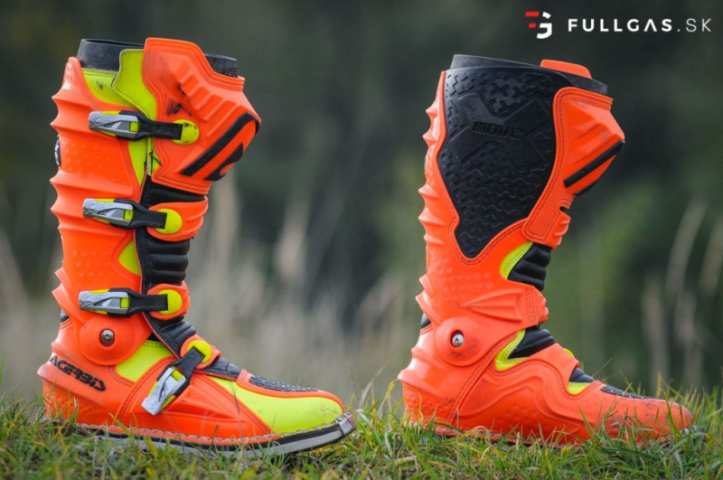 X-move boli doteraz najvyšší model z ponuky talianského Acerbisu. Jedná sa o kĺbové čižmy umožňujúce ľahší ohyb v členku (oproti bezkĺbovému modelu X-PRO V), ale dovoľujú aj mierny výkyv do strany. Gumené časti na špicoch zlepšujú grip na radičke a na vnútornej strane čižmy slúžia nielen pre lepší grip a pevnejšie držanie motorky, ale aj ako ochrana proti prepáleniu plastu. Vnútro je z hypoalergénneho, priedušného a antibakteriálneho materiálu.