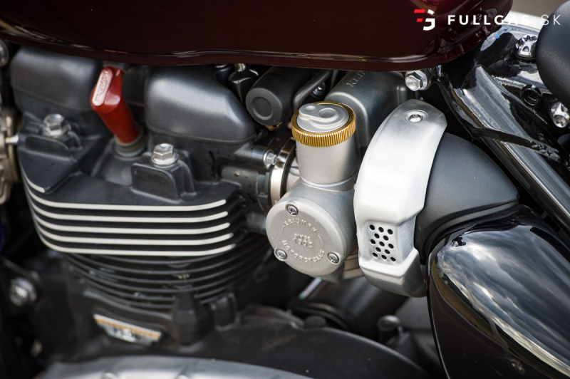 Motor s objemom 1200 kubíkov je zas stredobodom pozornosti ako pri T120 a tak isto aj pri Thruxtonovi. Vo všetkých troch je vlastne rovnaký motor, len je inak prestavený, ale v každej jednej ma ten motor bavil. Ide od klepáčka, ale kľudne sa nechá vytočiť a nemá problém ani so športovejšou jazdou. To sme si koniec koncov vyskúšali aj na okruhu v Dlhej.