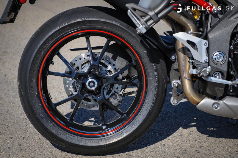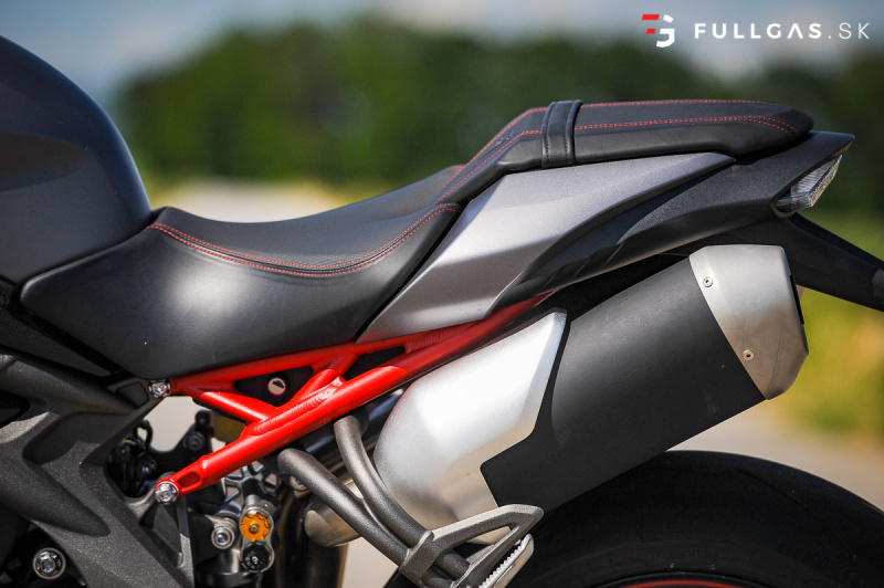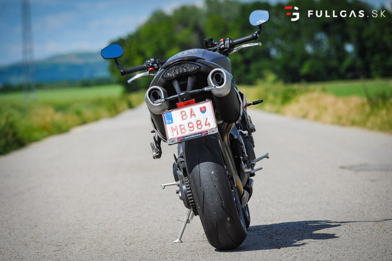 Angláni píšu, že tu pomenili mrte vecí. Nová hlava, spaľovacie komory, frézovanie kľukovky, nové piesty a ďalších 100 vecí. Ako vždy, ani teraz ma to nezaujíma a vôbec to nejdem riešiť. Nemám prečo. Tá moto ma úplne dostala! Na modeli v roku 2011 som nenašiel mínus ani jeden. Možno by som si ale teraz skúsil nasilu niečo vymyslieť. S odstupom času sa mi zdalo, že som staršieho musel viac prehovárať, a tak trochu pracne tlačit do zátačiek. Na tomto nie je ani to. Vodí sa krásne s ľahkosťou. V tabuľke som neskôr vykutral, že nový je o 20 kg ľahší ako ten starý, čo by niečo aj objasnilo. Ale skôr ako toto som si všimol spotrebu. Tá sa mi pohybovala od 3,2 litra pri normálnej jazde podľa predpisov. To nie je, myslím, zlé. Ak by aspoň pri radení do jedna trochu nebuchla prevodovka, pri ďalších kvaltoch by ste ani nevedeli, že tu je. Ide na môj vkus až neskutočne ticho, hladko a kultúrne. Vlastne kultúrne ide aj motor. Ak totiž idete klasické decentné tempíčko, motor ide hladko, nešklbe, neposkakuje ani nekucká. Tak isto aj brzdy. Sú dobre dávkovateľné, citlivé a čitateľné. Lenže toto sa dostávam zas tam, kde nechcem byť. Preto treba šúlcom riadne zatočiť a užívať si tú nespútanú beštiu.
