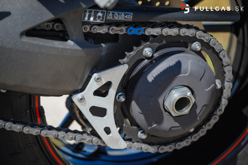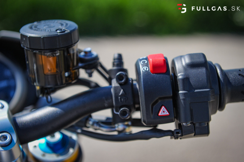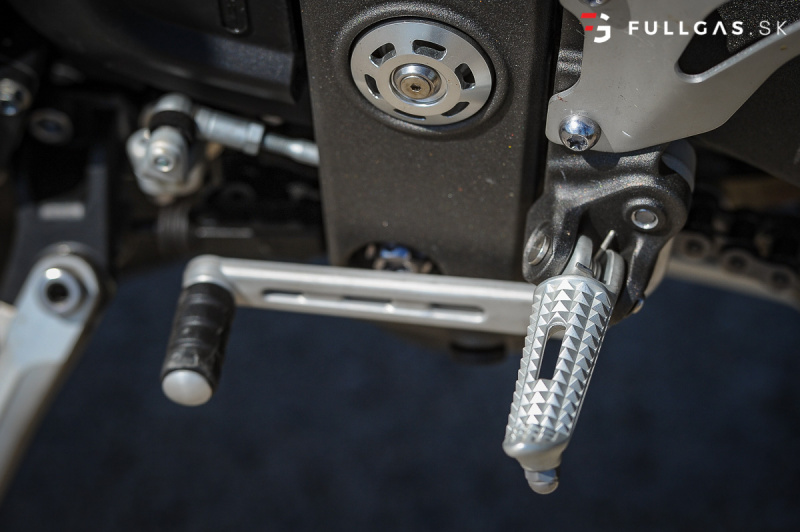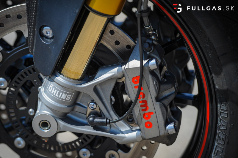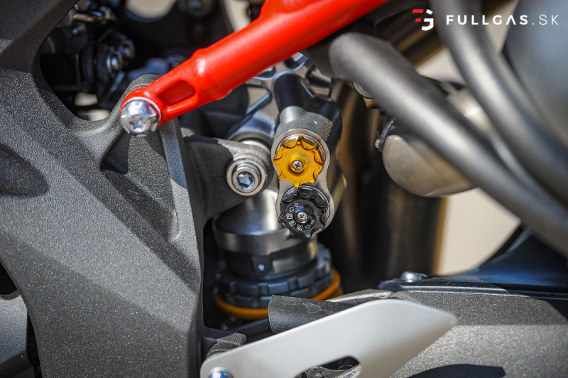Lenže toto hovado, ani ho už neviem inak nazvať, ma zviedlo na zlé chodníčky. Mapu Rain, Road, Sport a Rider ani neriešim. TRACK je tam stále. To je streľba, jak sa patrí. Motor ťahá, vlastne skôr sakramentsky ťahá jak blázen, od dvoch tisíc a je hladný po otáčkach, takže ani neviete a už je tam jedenásť tisíc. Síce plných 140 kobýl je pri 9400 otáčkach, ale tak nejak to preletíte a už vás zastavuje obmedzovač. Trochu sme sa zohrali a začal som radiť už pri 8 niečo tisíc. To vám je jó šupovica. Pred točkou pri dobrzďovačke kreslí zadná guma lajnu, trochu sa vás snaží zadné koleso predbenúť a len čo na výjazde otočíte zas ride-by-wire šúlcom, nestačíte sa diviť, jak sa motorka zakusuje do asfaltu a derie sa preč. Tomuto, samozrejme, hodne napomáha podvozok od Ohlinsu a kované monobloky od Brembákov. Trakčné kontroly, ABSko, spojka s preklzom, skoro všetko nastaviteľné či úplne vypínateľné.Tu sa vrátim k mape Rider, ktorú si viete nastaviť presne podľa seba. Ale ja som mal času dosť málo a vyhovovala mi už spomínaná Track mapa. Tak som sa s tým nebavil a radšej som si užíval.