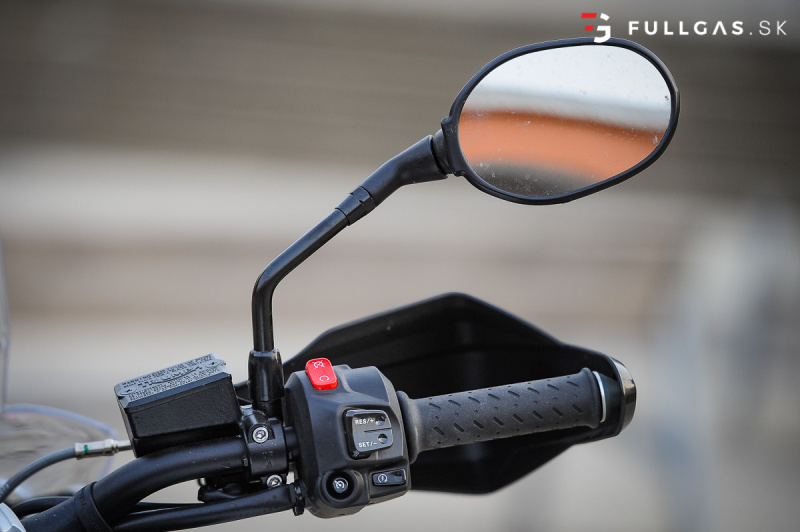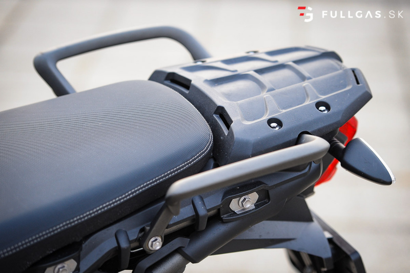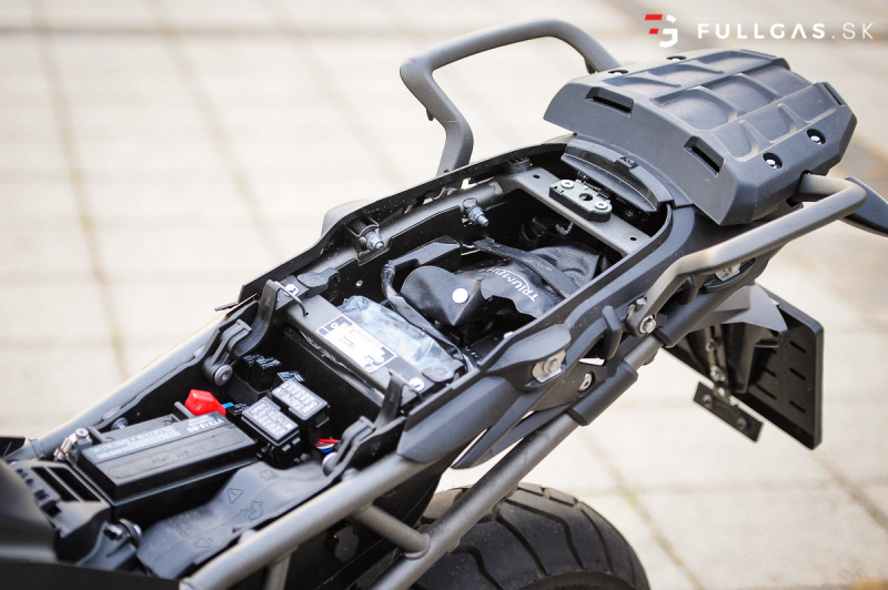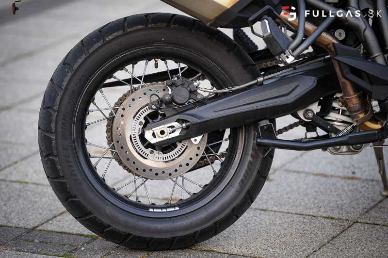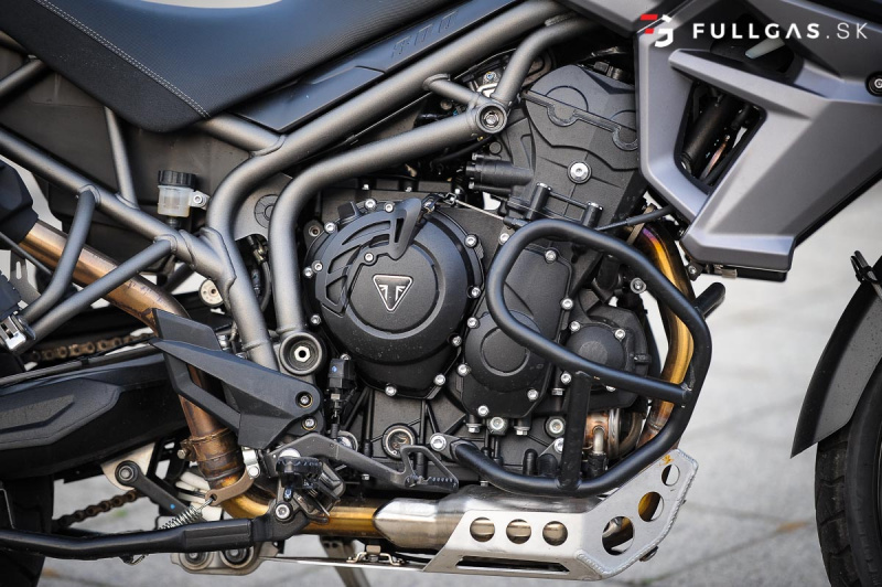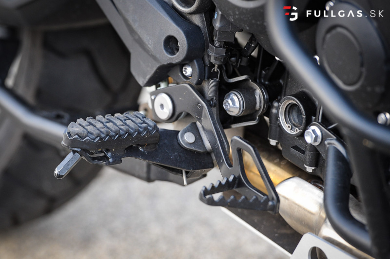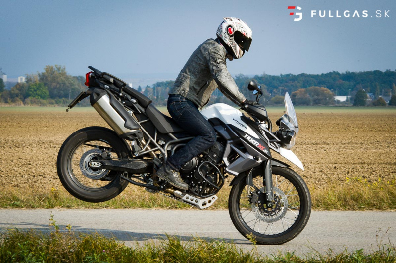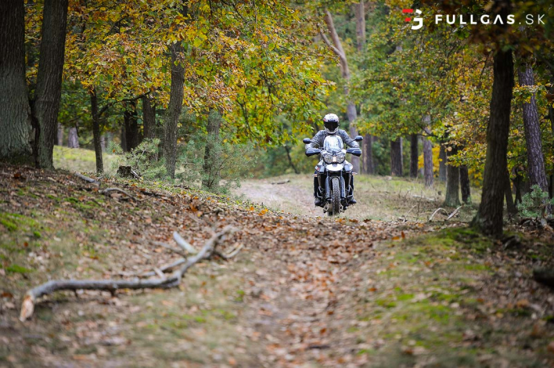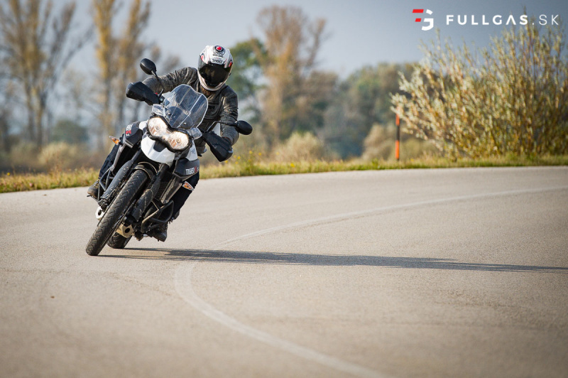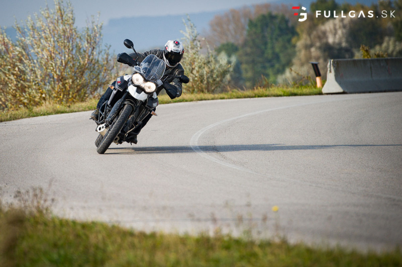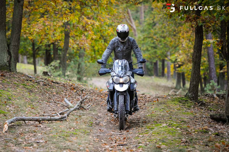 Prejazd zákruty driftom nie je žiadny problém a takisto menšie skoky. Vtedy si uvedomujem, že na prvý pohľad tvrdší podvozok je teraz výhodou. Dá sa viac nakladať a netreba sa zamýšľať nad tým, že koľko ešte znesie. K pocitu „bezpečnosti“ prispieva aj pevný hliníkový kryt pod motorom a padacie rámy. Určite by som tu pochválil aj dávkovanie výkonu, elektro asistentov a zas tie brzdy. Na veľkom tigrovi pri vypnutých elektro pomôckach otáčky okamžite vyleteli hore a zadné koleso tancovalo kade tade. Tuto je to o dosť ovládateľnejšie. Nástup výkonu je tu o dosť slabší a v pohode sa dá motorka kočírovať aj pri vypnutej trakčnej kontrole.
