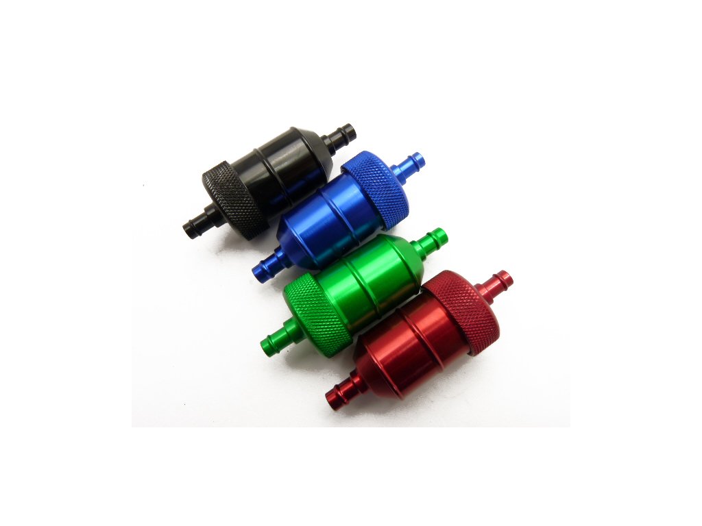 pitbike Tomanon; palivový filter, farba modrá, s CNC telom, vymeniteľný palivový filter, telo filtra sa dá rozšróbiť, dĺžka tela bez vývodov je 45mm, priemer 25mm, vývody priemer 6,5mmDodatočné parametre