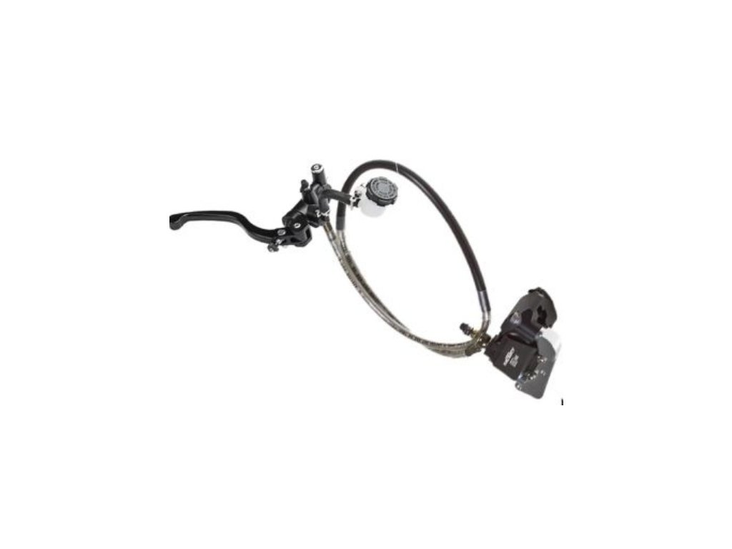 Kompletne pripravené na inštaláciu s brzdovým čerpadlom Supermoto Racing a štvorpiestkovým brzdovým strmeňom Factory Racing