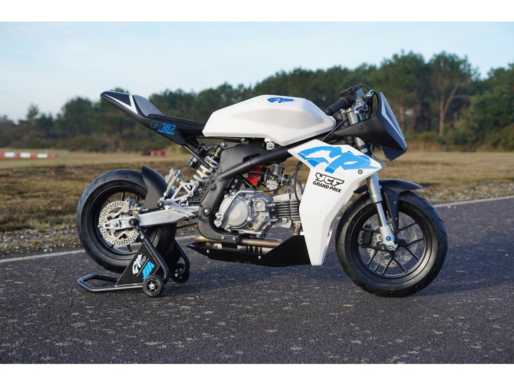 Toto je absolútny vrchol ponuky YCF a splnený sen každého okruhového jazdca. Model GP 187 nie je bežný pitbike, ale nekompromisný MiniGP závodný špeciál. Revolučný hliníkový rám, kyvná vidlica a pomocný rám zaisťujú extrémne nízku hmotnosť a tuhosť. Srdcom stroja je brutálny 4-ventilový motor Daytona Anima 190cc. Vďaka výfuku umiestnenému pod motorom má motorka nízke ťažisko a na 12-palcových kolesách s pneumatikami PMT sedí v zákrutách ako prilepená.