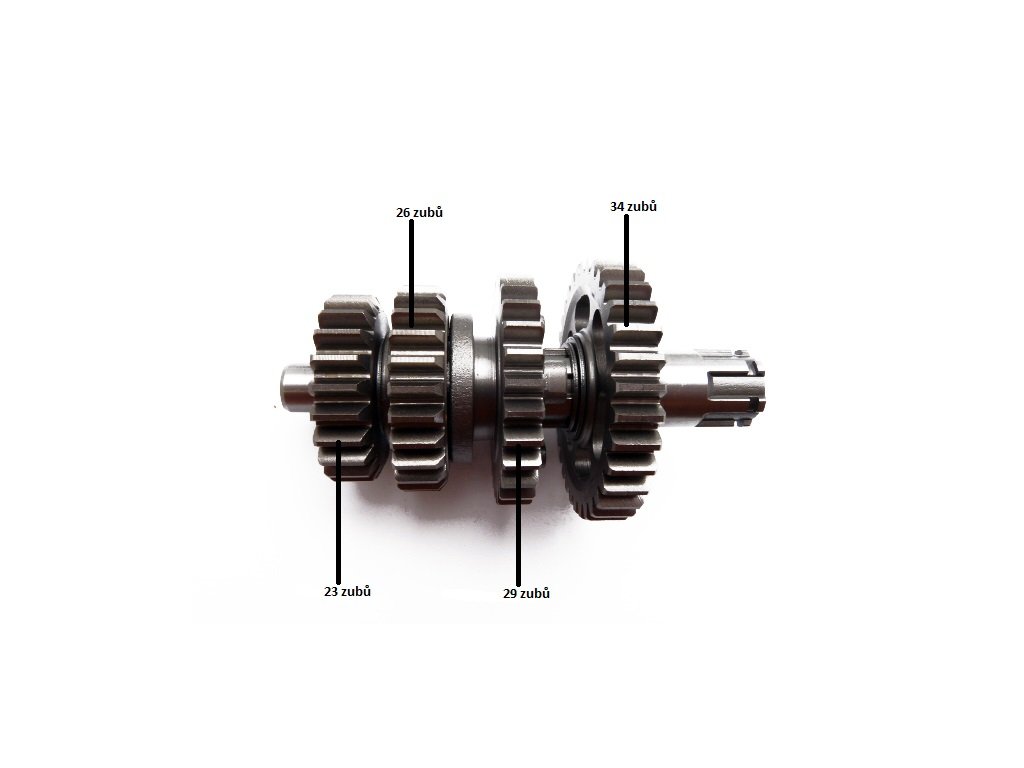 originálne pitbike Lifan,Tomanon; prevodovka proti hriadeľ primárne koliesko 20mm, hriadeľ karter pravá strana 12mm, celková dĺžka 115,4mm, počet zubov jednotlivých ozubených koliesok viď. obrázok. V kombinácii s hlavným hriadeľom (katalógové číslo: 000693) je prevodový pomer 1. stupňa – 12/34(2,833), 2. stupňa – 17/29(1,705), 3. stupňa –21/26(1,238), 4. stupňa – 4. stupňa Iba v kombinácii s hlavným hriadeľom katalógové číslo: 000693 náhradný diel pre motory: Lifan125 ( použitý na modeloch Stomp Superstomp 125R, DemonX DR125, WPB RACE125)Dodatočné parametre