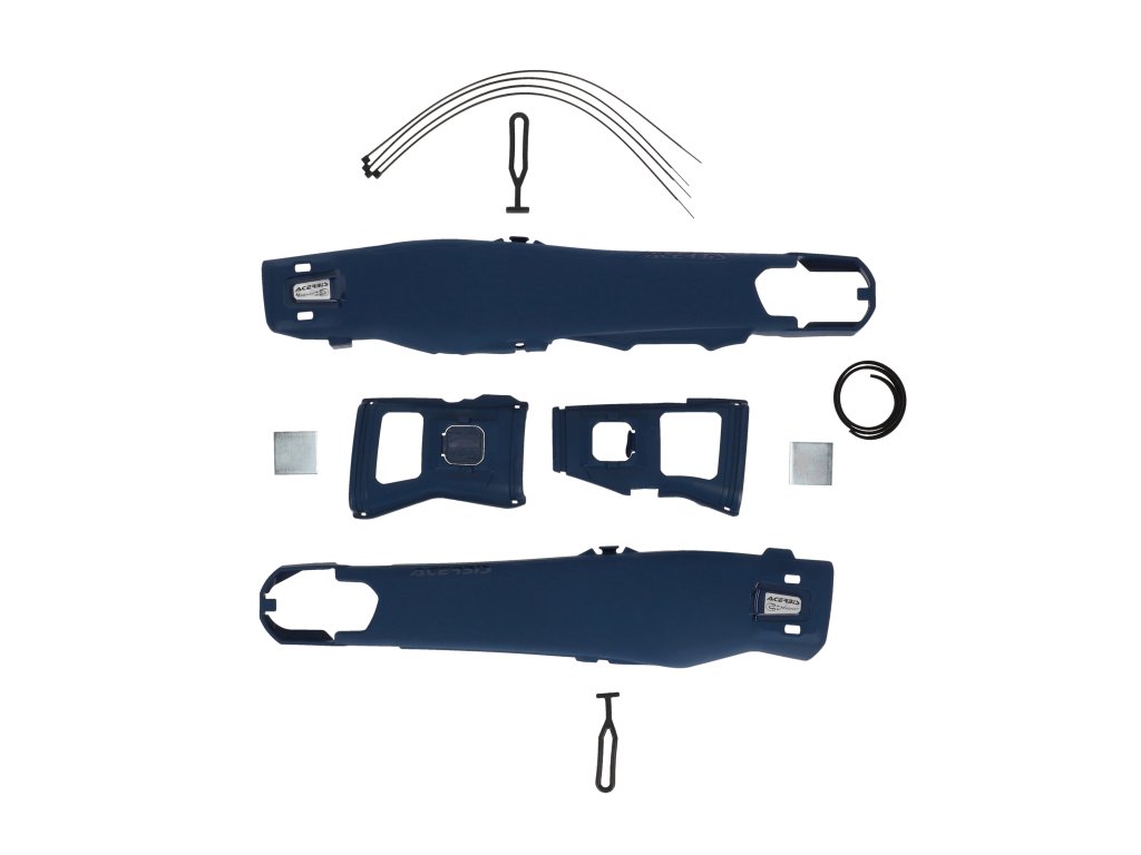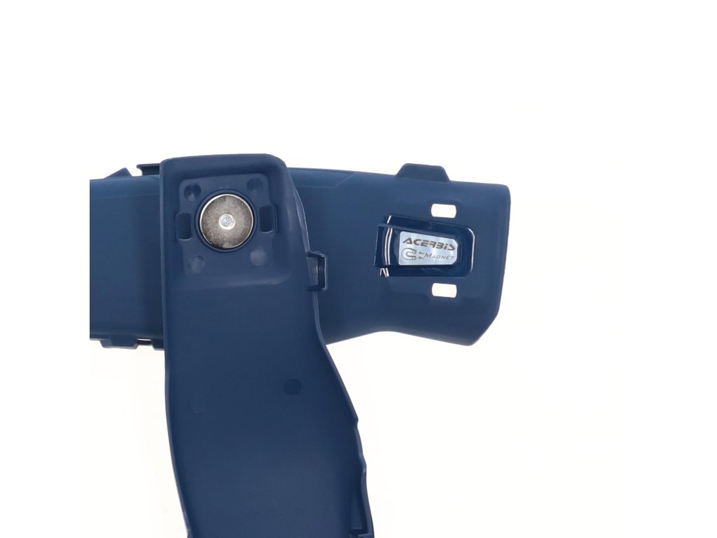 - Upevňovací systém, ktorý využíva magnety a elastické pásy, umožňujúce v priebehu niekoľkých sekúnd rýchle odstránenie chráničov z kyvnej vidlice vždy, keď chcete zabezpečiť umývanie a/alebo údržbu.