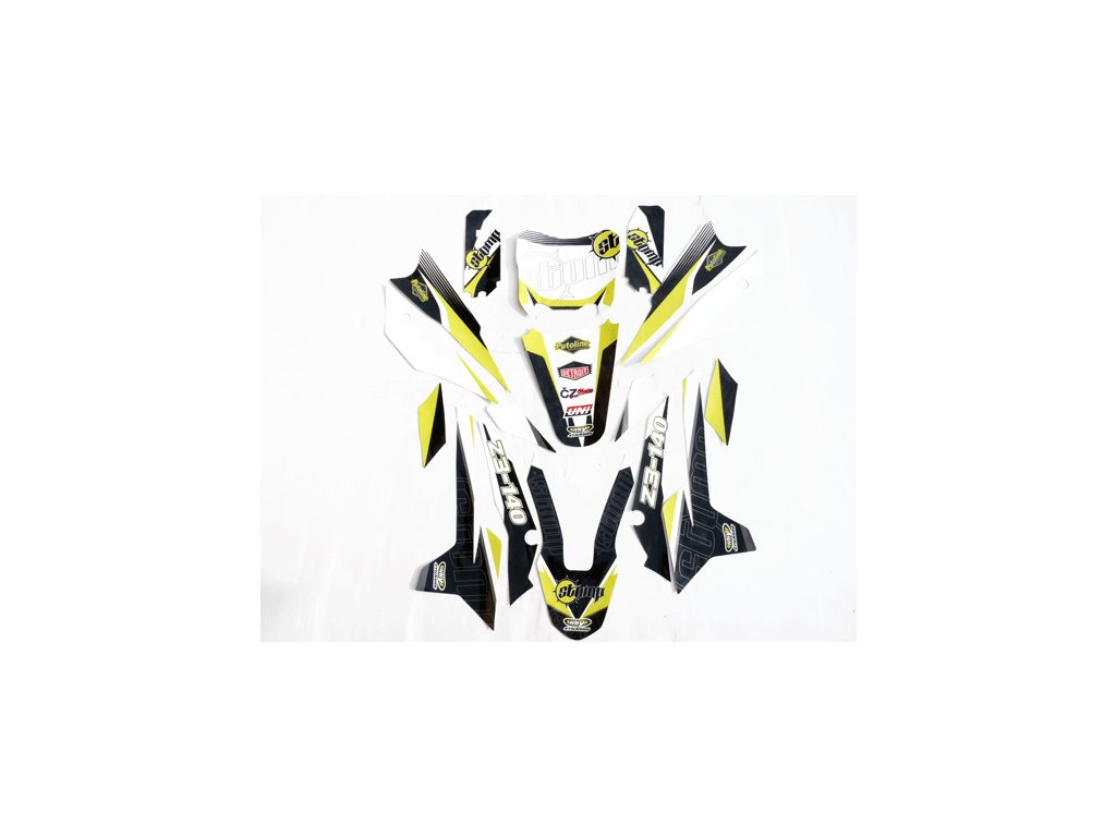 originálne pitbike Stomp, Tomanon; kvalitné polepy na plasty Detroit Stomp Z3140 žlté, bez polepu zadného blatníka. Je možnosť zakúpiť blatník s polepom: zadný blatník Stomp Z3Dodatočné parametre