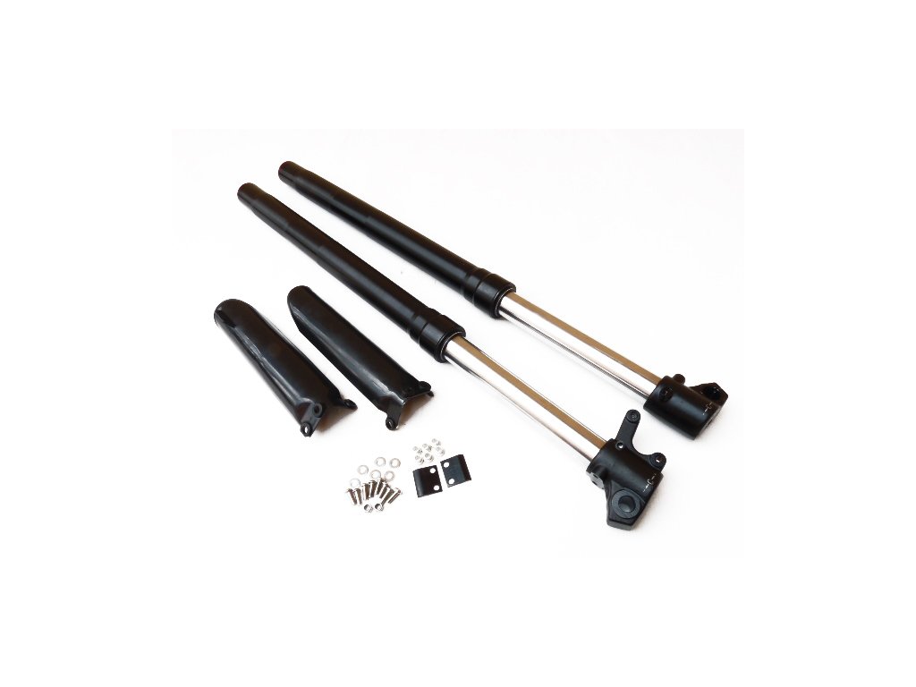 originálne pitbike Tomanon; vidlica replica Marzocchi plne nastaviteľné, predné tlmiče dĺžka 735mm, priemer uchytenia do okuliarov 45/48mm, os kolesa 15mm, priemer klzákov 37mm, rozteč uchytenia brzdiča 52mm. V hornej časti vidlíc nastavíte odskok (rýchlosť vrátenia vidlice), symbol F alebo - vidlica sa vracia rýchlejšie, symbol S alebo + vidlica sa vracia pomaly. V spodnej časti nastavíte tuhosť vidlice, symbol + tuhšie vidlice, symbol - mäkšie vidlice. Predné tlmiče sú plne nastaviteľné, znesú väčšie zaťaženie, lepšie tlmia nerovnosti Na výmenu z obyčených vidlíc 735mm na vidlice Marzocchi 735mm potrebujete os kolesa typ 03, pitbike predná brzda komplet dvojpiestková (kod 000445), dodávané s krytmi vidlíc a skrutkami na uchytenie. náhradný diel pre modely: Stomp Z3( všetky modely) DemonX XLR2Dodatočné parametre