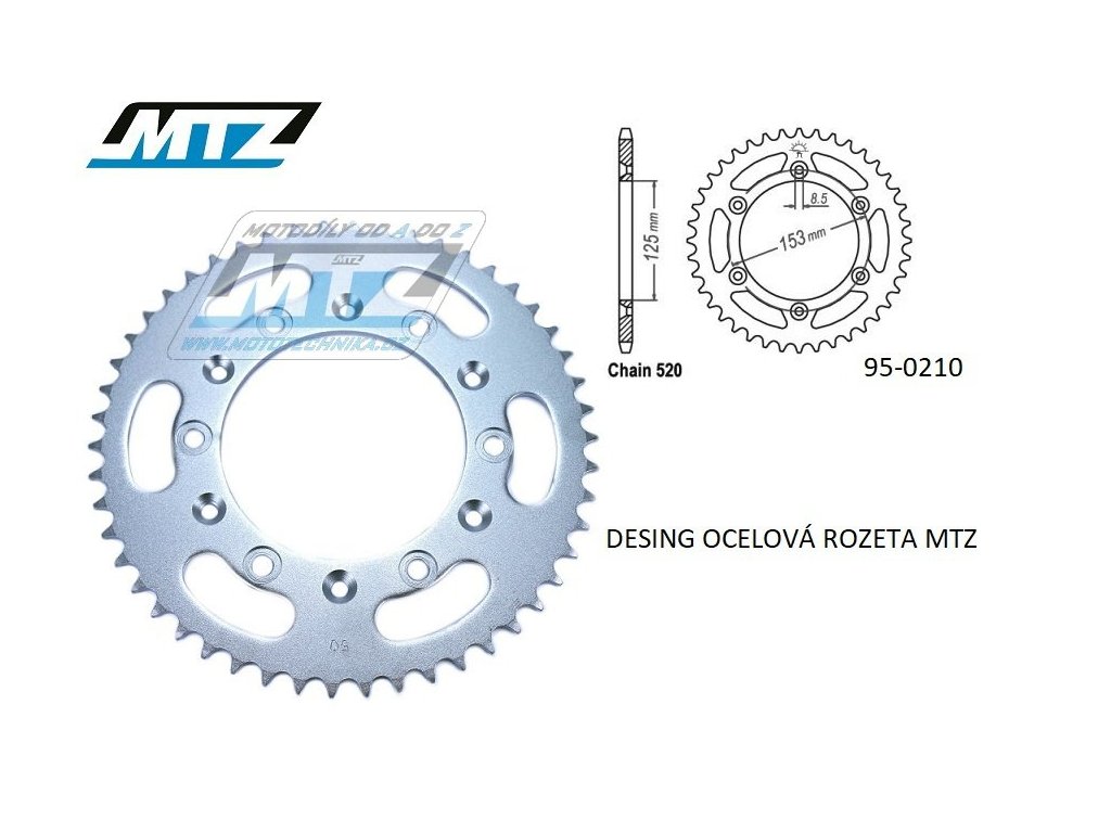 Rozeta ocelová (převodník) 0210-52zubů MTZ - Honda CR125+CR250+CR500 + CRF250R+CRF250X+CRF450R+CRF450X+CRF450RX+CRF450L + CRM250+CRF150F + CRF230F / 03-19 + XR250S+XL250S+XL250 + XR250R+XR400R / 96 -04 + XR650R / 00-07