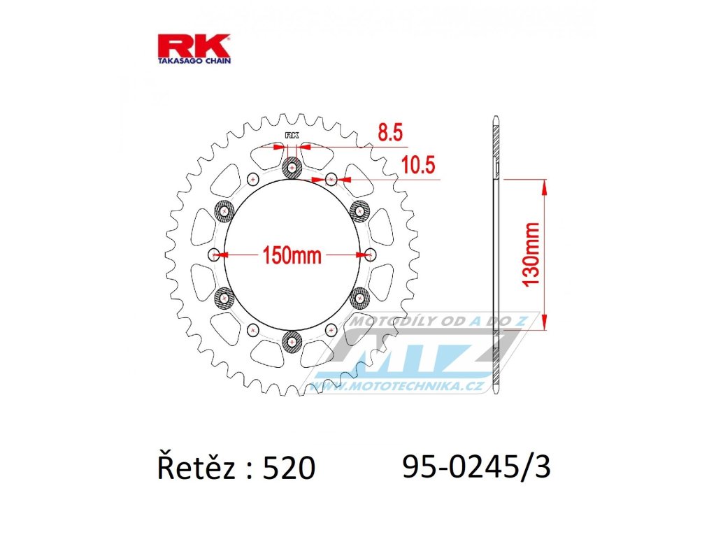 Rozeta oceľová (prevodník) 0245/3-45zubov RK - Honda FMX650 + FX650 Vigor + SLR650 + VT250 + NX650 Dominator + XR600 + Yamaha YZF750R + FZ400 + YZF R6 + YZF600