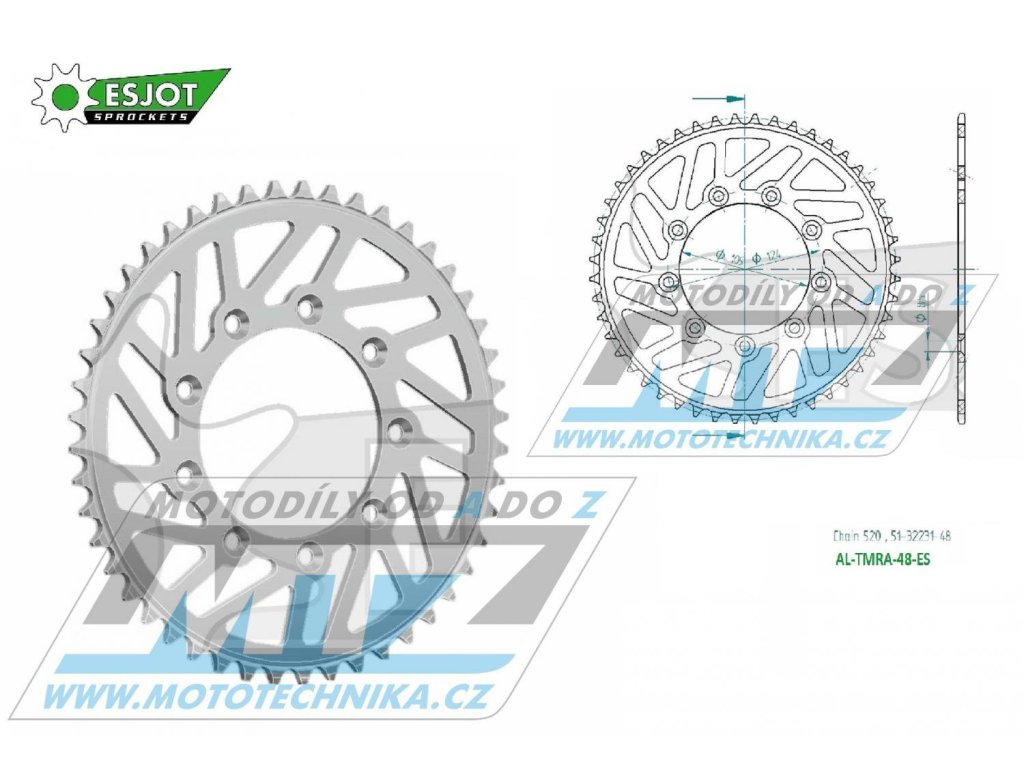 Rozeta řetězová (převodník) Dural TM-48zubů ESJOT 51-32231-48 - barva stříbrná - TM MX125+MX144+MX250+MX250F+MX450F+MX530F / 92-22 + EN125+EN144+EN250+EN300+EN250F+EN300F+EN450F+ EN530F / 92-22 + MX80