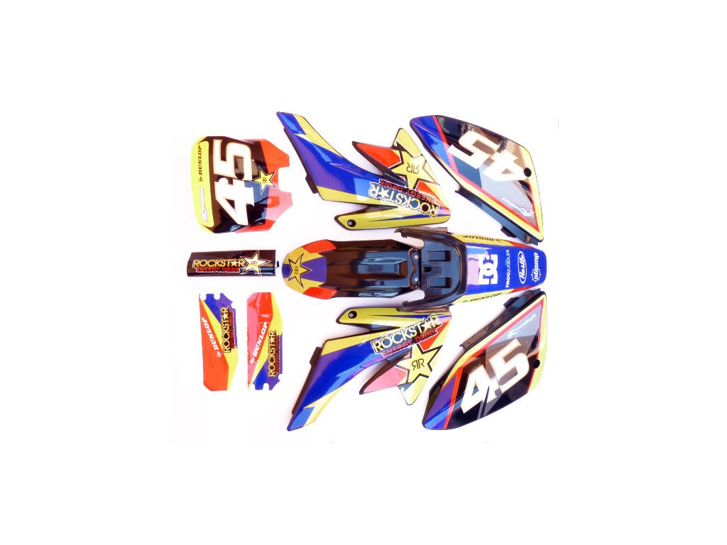 Stomp pitbike čierne plasty CRF70 s polepmi rockstar/žlté Stomp, DemonX, WPB