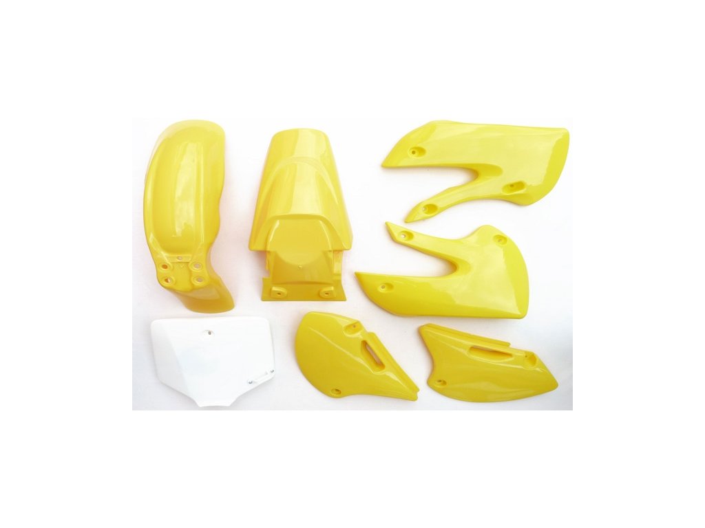 originálne pitbike Stomp, Tomanon; sada plastov KZ/ KZR, farba žltá, vyrobené z polypropylénu, ktorý zaručuje vysokú odolnosť proti poškodeniu/ zlomeniu (vysoká ohybnosť), sada obsahuje: predný blatník, zadný blatník, pravý – ľavý zadný bok, pravý – ľavý predný bok, predná tabuľka; l náhradný diel pre modely: Stomp KZ/ Stomp KZ-RDodatočné parametre