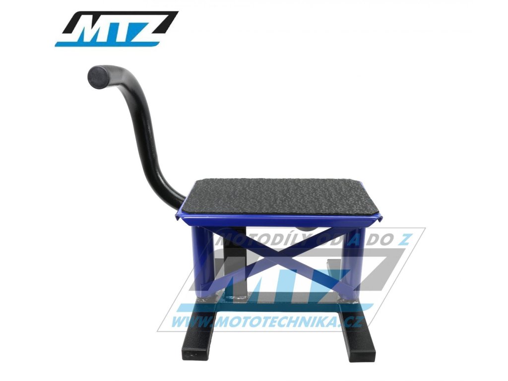 Stojanček Enduro/Supermoto (stojan pod motocykel) s kovovou doskou a pošmykľavou gumou - modrý