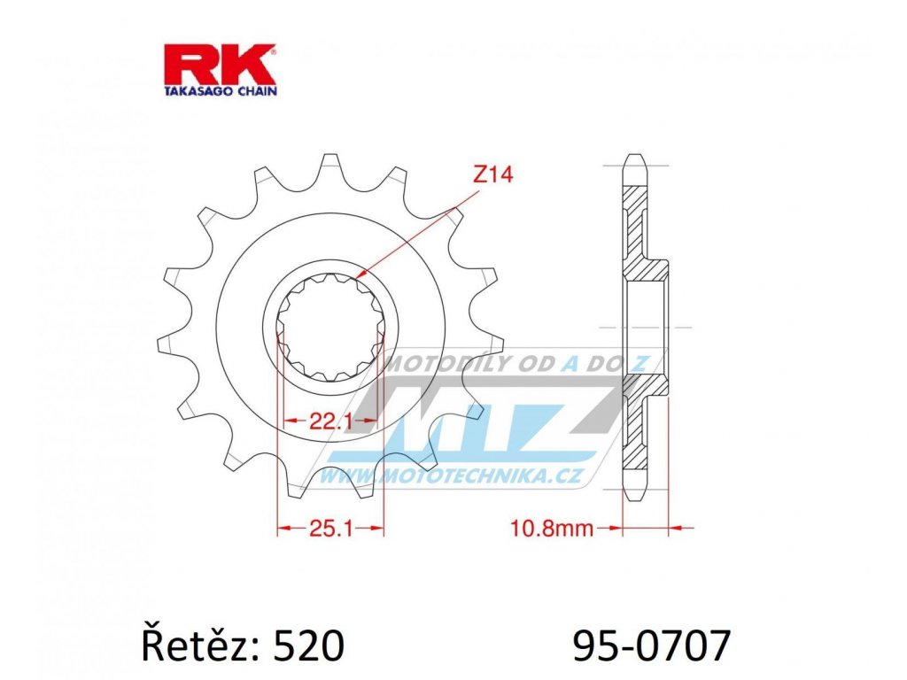 Koliesko reťazové (pastorok) 0707-14zubov RK - Aprilia 450MXV + 450RXV+550RXV + 450SXV+550SXV + AJP PR7 650 Adventure + SWM SM500R+650RS