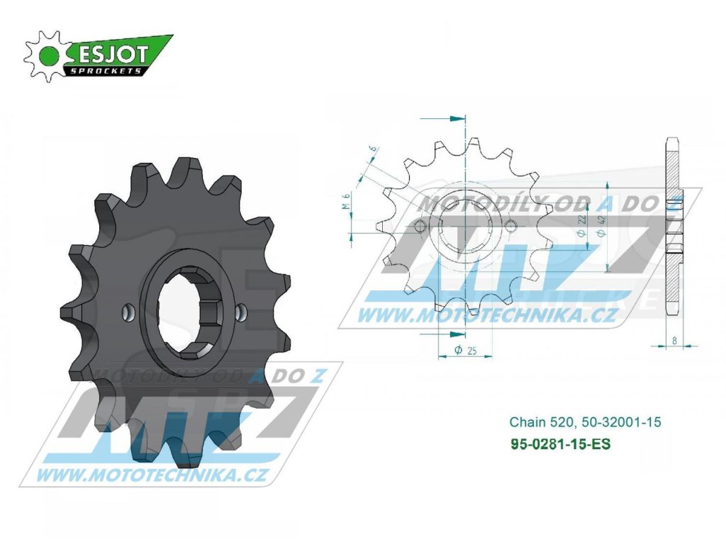 Koliesko reťazové (pastorok) 0281-15zubov ESJOT 50-32001-15 - Honda XR250R+XR500R+XR600R+XR500S+XL400R+XL500R+XL600R+XL50 250R+CL250+MVX250