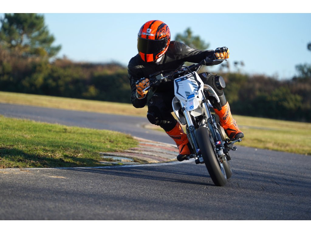 Tento model je vstupnou bránou do sveta SuperMoto pre jazdcov od 10 rokov, ale svojimi parametrami uspokojí aj dospelých. Motorka je osadená spoľahlivým motorom Zongshen 155cc, ktorý ponúka dostatok výkonu pre technickú jazdu na asfaltových okruhoch. Manuálna 4-stupňová prevodovka učí jazdca presne pracovať s otáčkami a spojkou. Vďaka 12-palcovým kolesám s kvalitnými pneumatikami PMT a nastaviteľnej vidlici má motorka výbornú priľnavosť a ovládateľnosť.